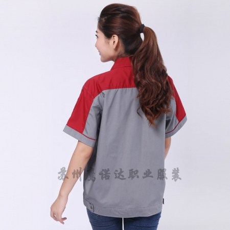 苏州鹰诺服装:红色拼藏青工作服AC13-2