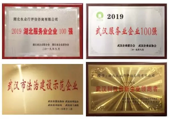 今年以来,永业行先后入选2019年度省、市两级服务业企业100强,获评中估价协诚信单位、土地估价报告电子化备案优秀土地评估机构、继续教育培训基地,第二十届湖北省优秀企业、扶贫攻坚先进单位、武汉科技创新企业领跑者、武汉市法治建设示范企业。