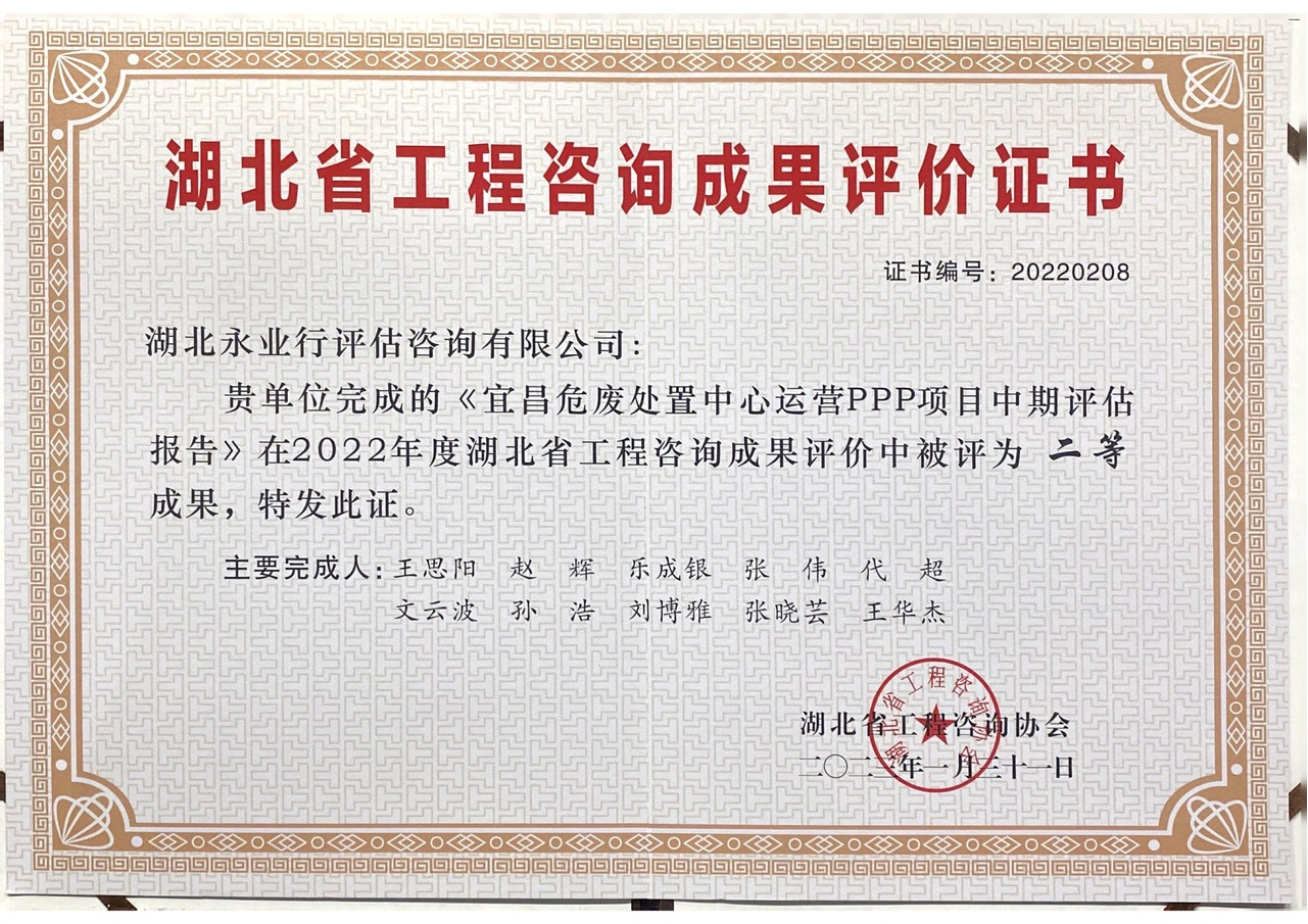 湖北省工程咨询优秀成果二等奖
