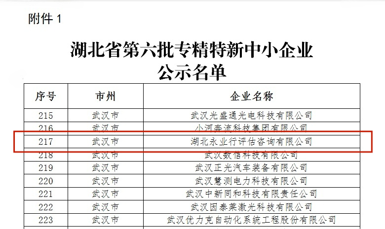 湖北省专精特新中小企业——永业行