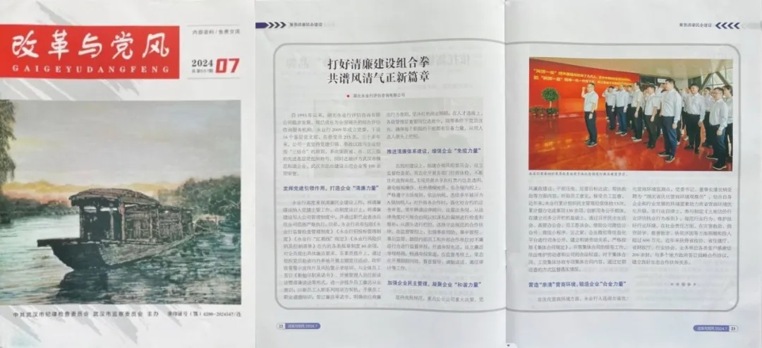 近日,中共武汉市纪律检查委员会、武汉市监察委员会主办的杂志《改革与党风》,刊发《打好清廉建设组合拳 共谱风清气正新篇章》文章,宣传介绍了永业行坚持以党建为引领,多措并举推进清廉企业建设的实践和经验。