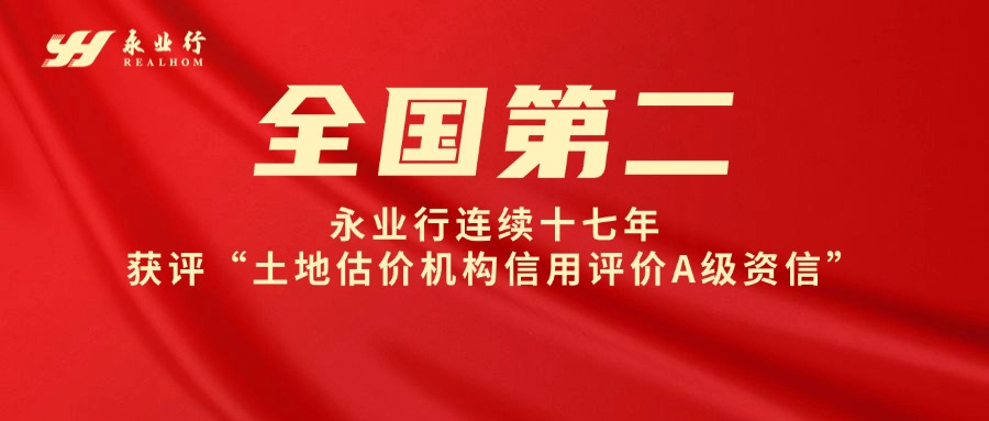 2024年12月25日,中国土地估价师与土地登记代理人协会(下简称“中估协”)发布“2025年度土地估价机构信用评价(A级资信)”结果,此次公布荣获土地估价机构信用评价A级共120家、准A级共60家,永业行位列全国第二、湖北第一,连续17年获评“土地估价机构信用评价A级”。