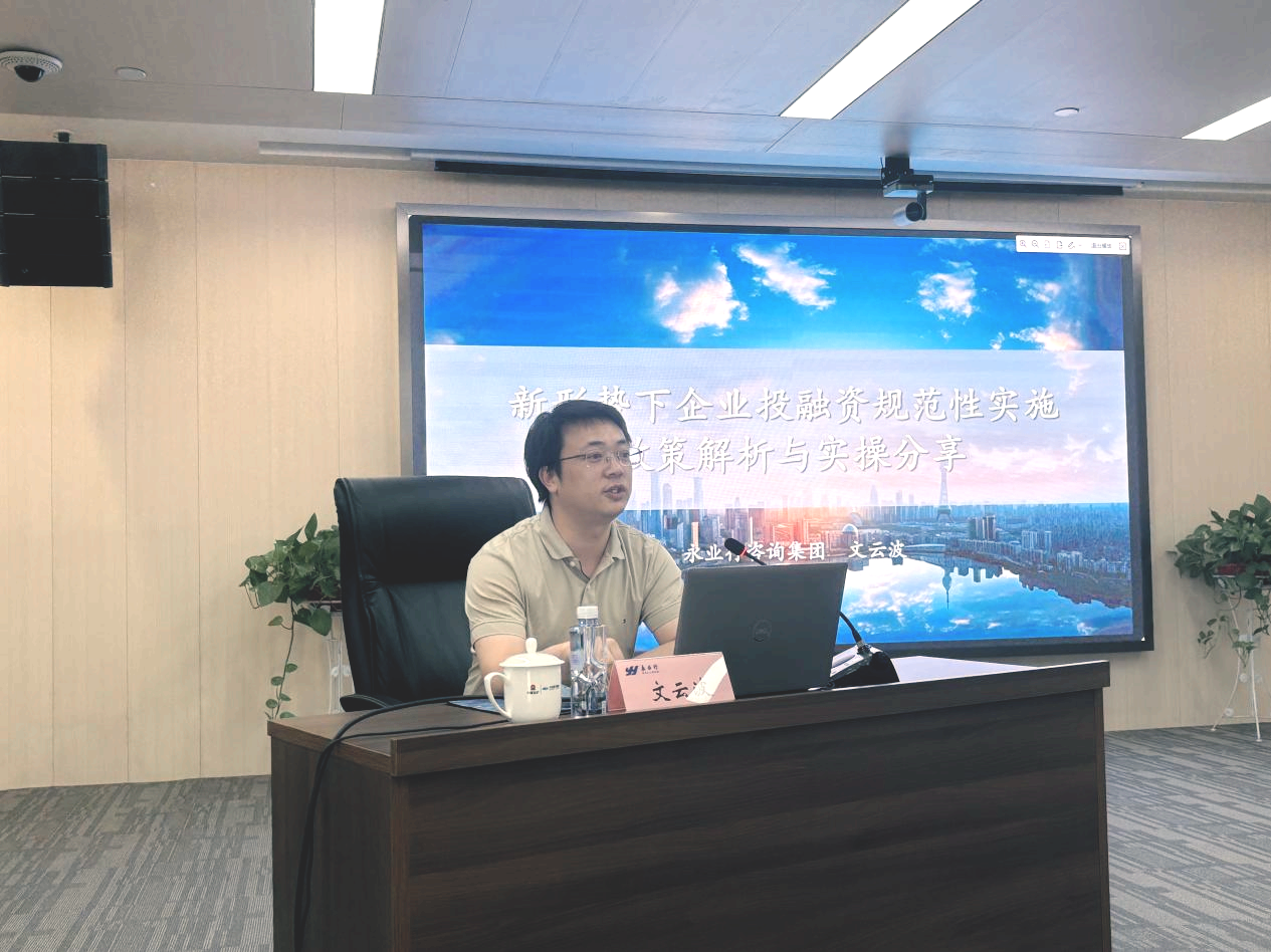 2025年5月26日,中冶南方城建公司组织召开城建大讲堂第二期培训会,公司党委书记、总经理沈胜节出席会议。永业行高级副总裁文云波受邀就“新形势下企业投融资规范性实施政策解析与实操分享”开展专题交流。