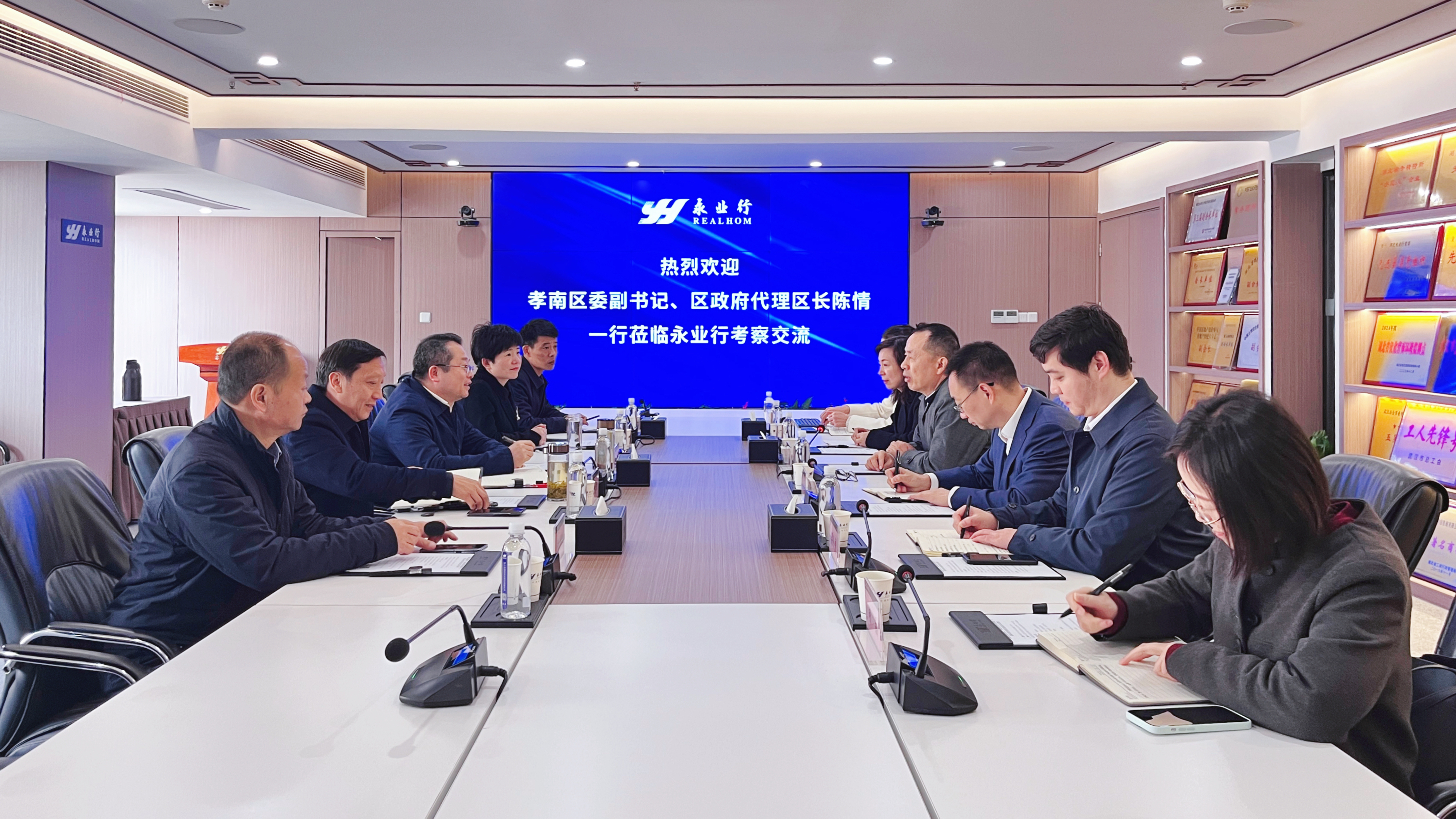 2024年12月3日,孝南区委副书记、区政府代理区长陈情,孝南区委常委、区政府副区长郭红燕一行莅临永业行考察指导工作。永业行党委书记、董事长潘世炳,副总裁金建华等热情接待并参与座谈交流。