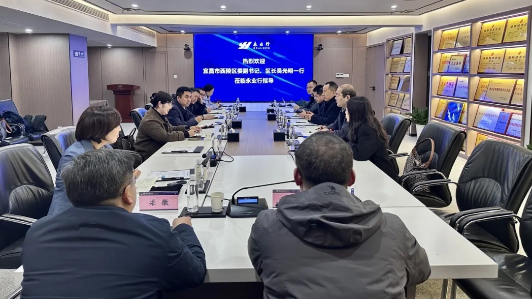2025年2月24日,宜昌市西陵区委副书记、区长吴光明,区委常委、区政府常务副区长覃涛,区政府副区长兼夜明珠街道党工委书记涂超一行莅临永业行考察指导工作。永业行党委书记、董事长潘世炳,常务副总裁吴学锋,副总裁兼鄂西区总经理雷小明等热情接待并参加座谈交流。