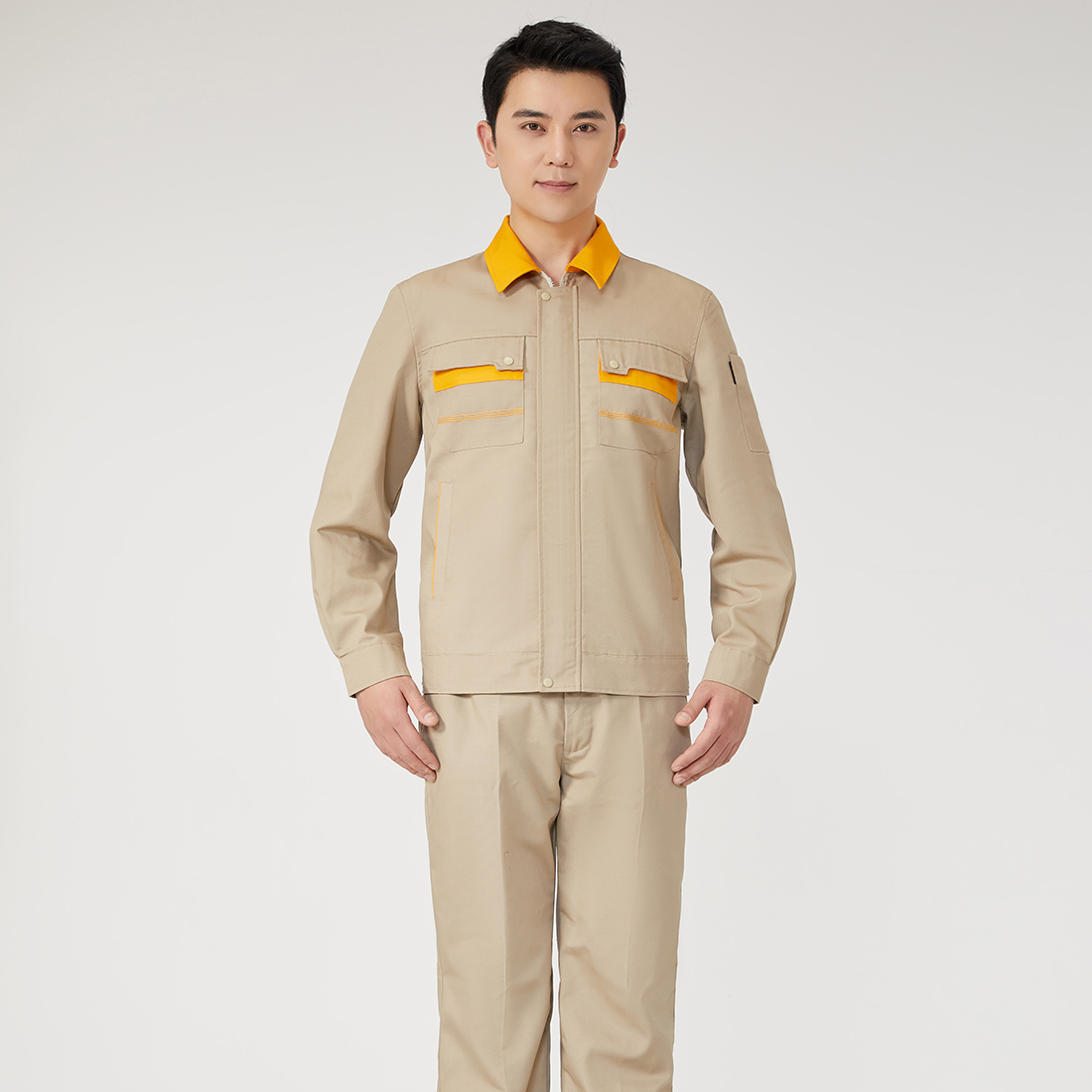 驼色拼黄色工作服AC14-4