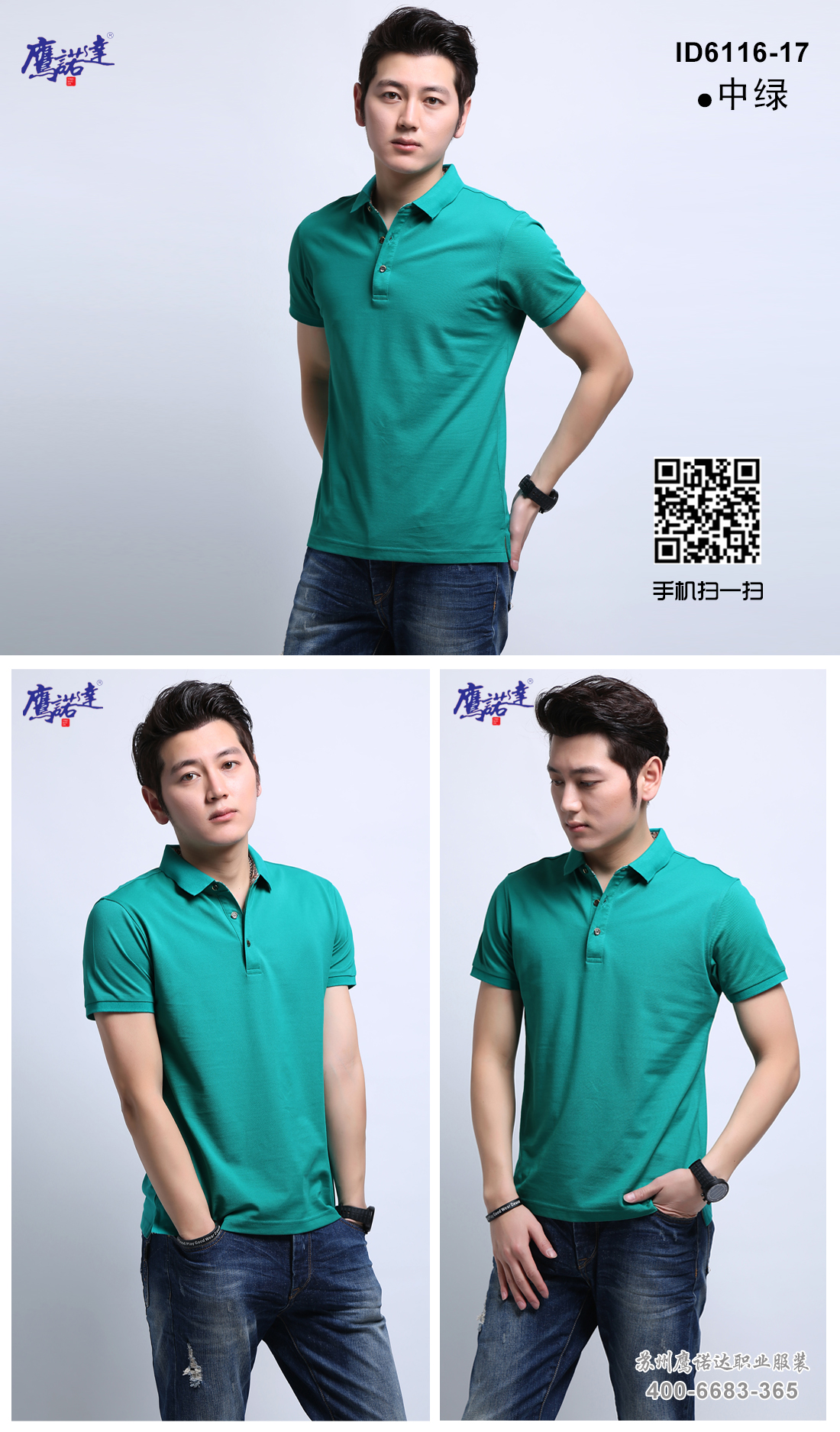 中绿提花领cvc抗起球纤维Polo衫ID6116-17