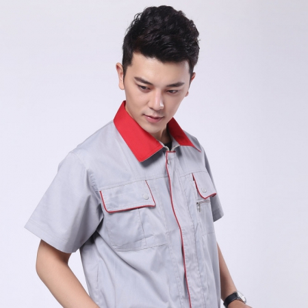 大红配浅灰春秋工作服AC078